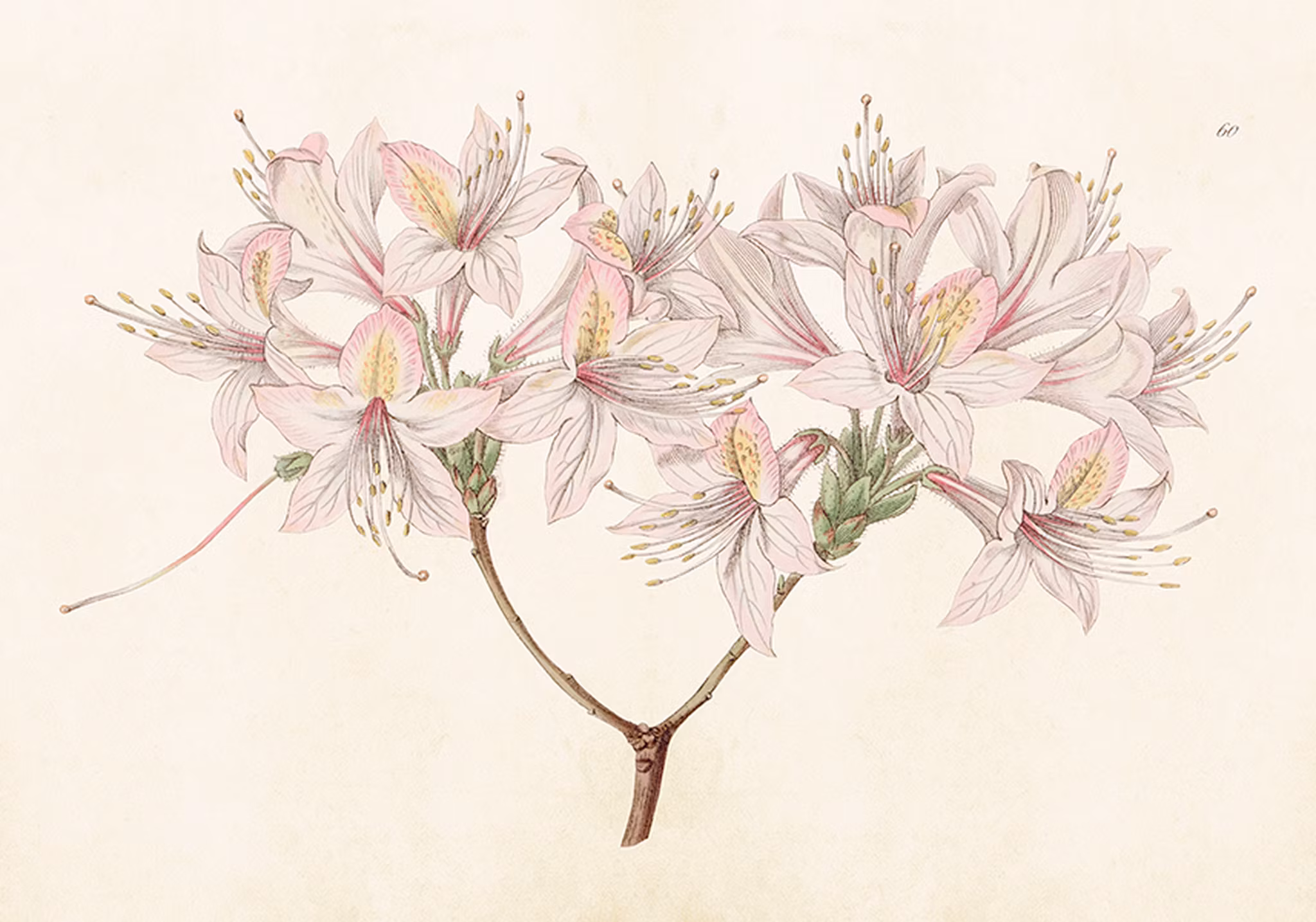 Motiven på dessa posters är avbildade från gamla originalmålningar som man hittat i gamla böcker och planscher. Denna fina postern med en azalea är 50 x 35 cm.