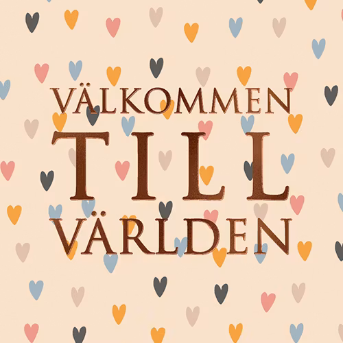 Litet kort med kuvert "Välkommen till världen", 7,5x7,5 cm