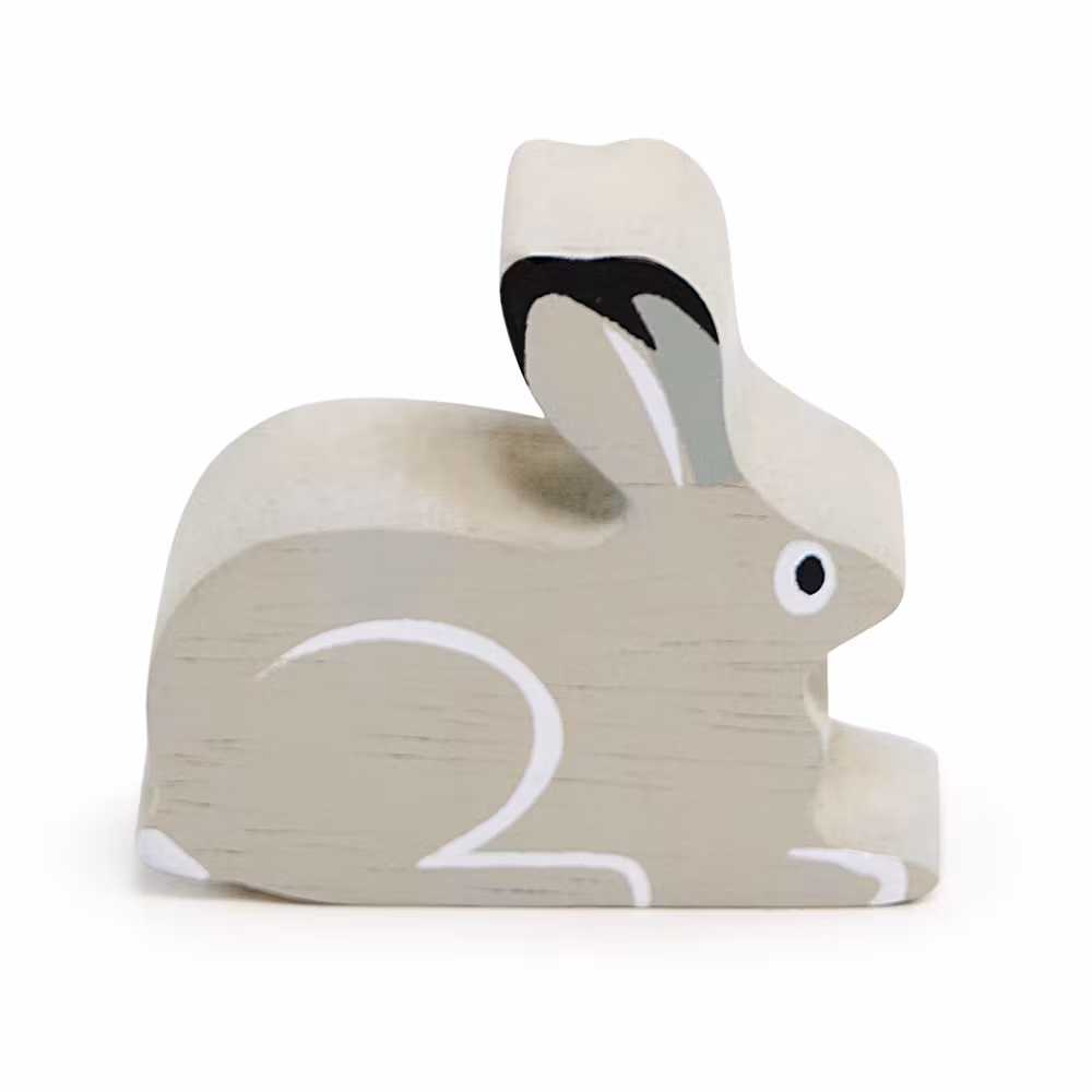 En fin snöhare i trä att leka med. Fint och enkelt målad i vattenbaserade färger.