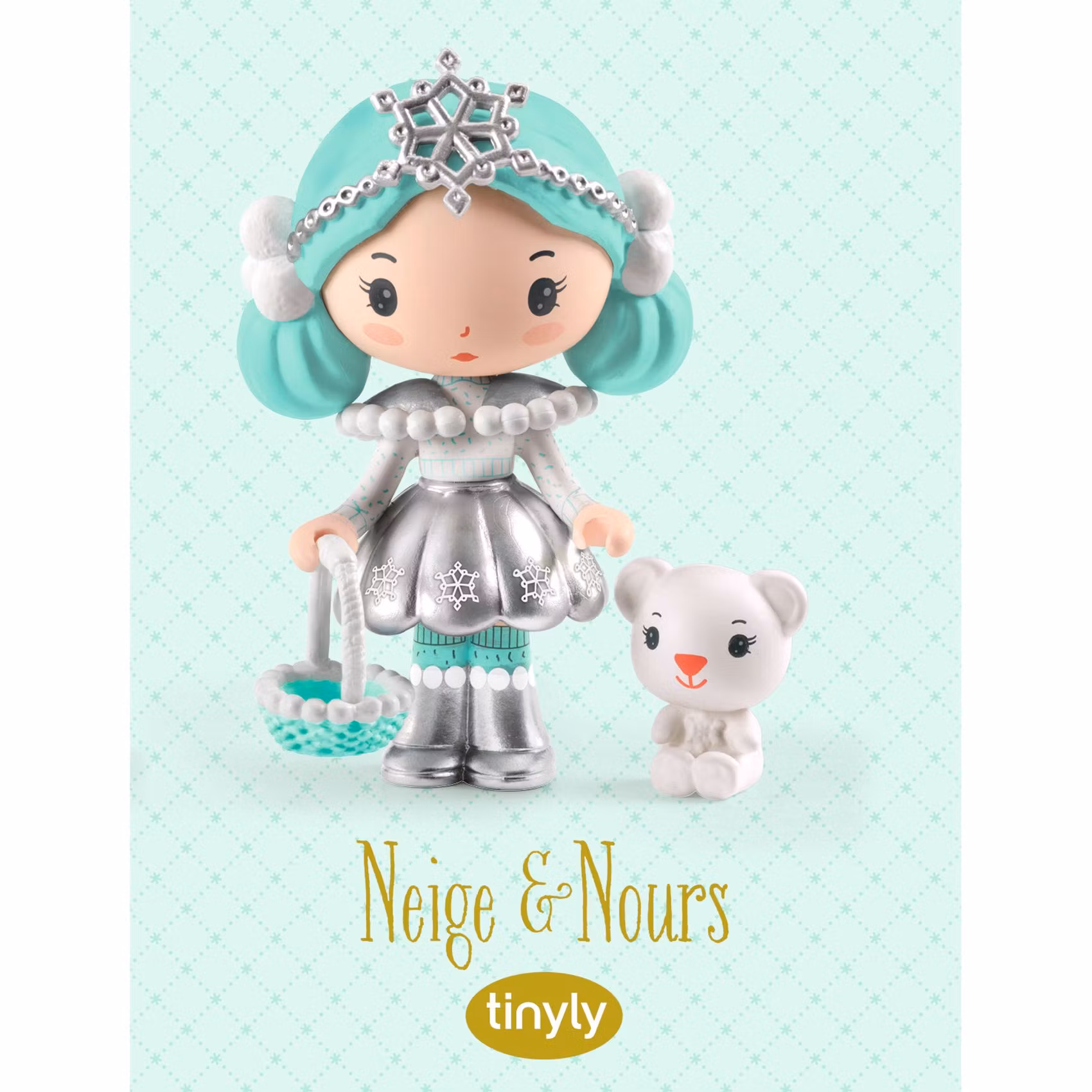 I det frostiga riket kan du ha turen att träffa Neige Snow, isprinsessan med sin glänsande silvertiara. Hon bär sin söta lilla korg, har en avtagbar poncho över axlarna som skydd mot de isiga vindarna och har alltid sin trogna följeslagare Nours vid sin sida – en charmig isbjörnsunge. Dessa figurer, med sina mjuka färger och fina detaljer, är hämtade från Tinylys magiska värld. De har rörliga huvuden och armar, och är perfekta att samla på, visa upp eller använda som karaktärer i egna spände berättelser och sagolika äventyr. Innehåll: 1 figur, 1 följeslagare och 2 plasttillbehör (poncho och korg).