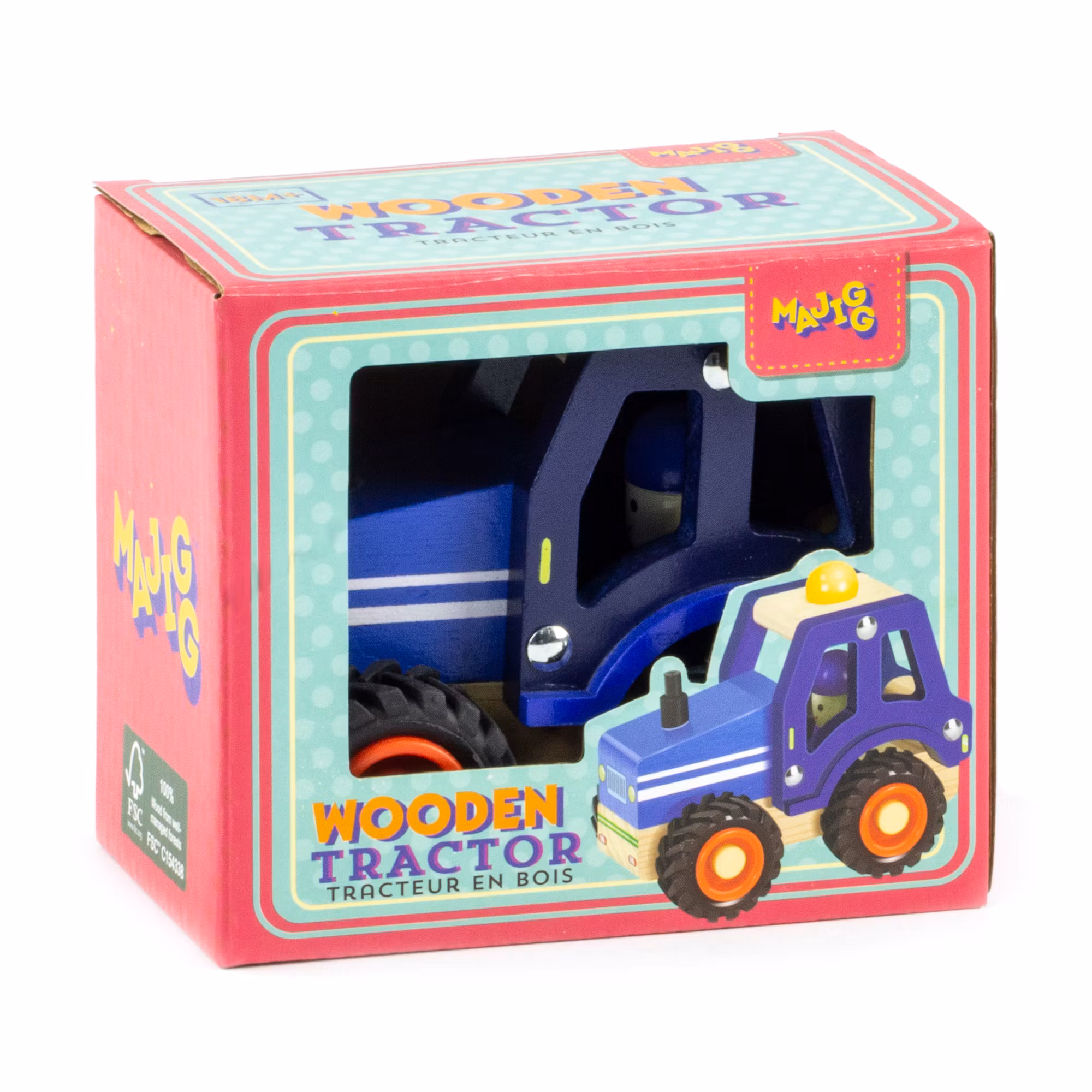 Traktor i trä, blå, Majigg