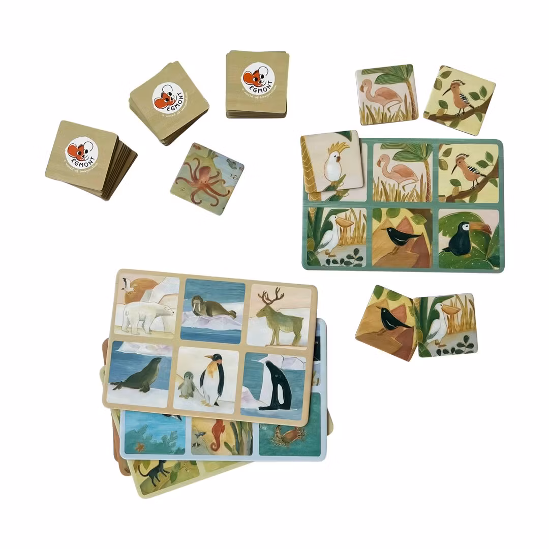 Välj mellan flera olika temabrickor och samla sedan djur. Den som fyller sin bricka först vinner. Jättekul att spela ihop med barnen!